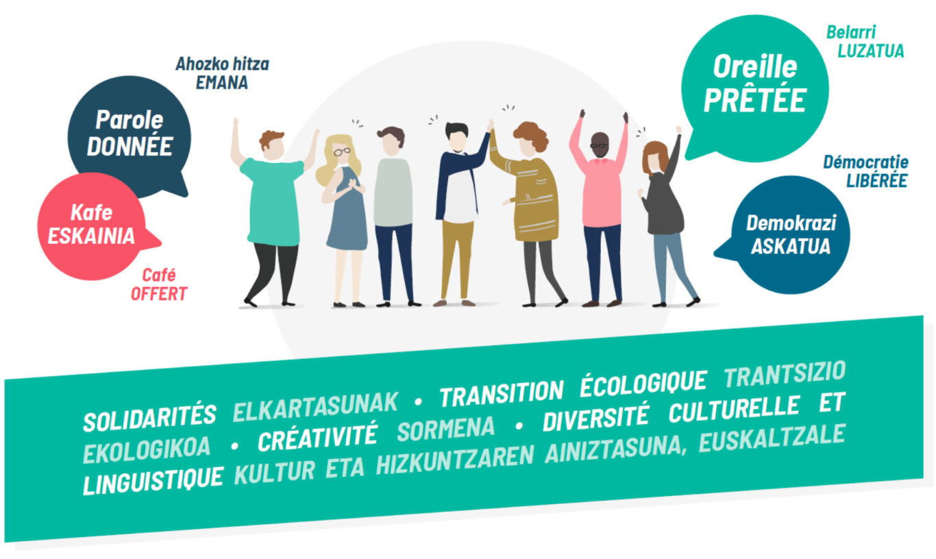 Pour toutes celles et ceux qui souhaitent contribuer à construire ce projet municipal et faire de Bayonne, demain, une ville en transition, solidaire, créative et participative.